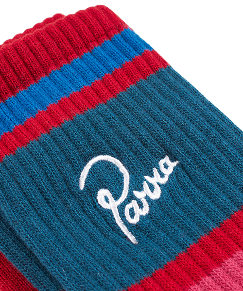 3本のラインと、PARRA らしい独特な配色が印象的なソックス。シンプルなコーディネートのポイントにどうぞ。